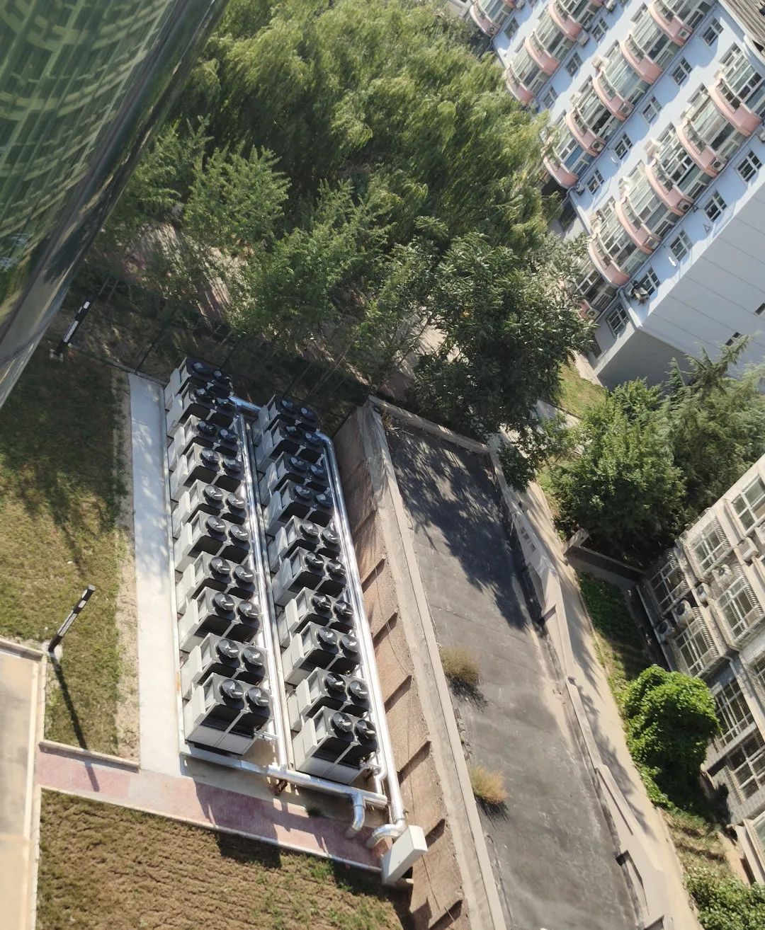 傳統(tǒng)設備需要布置在地下室機房,兩套設備占地面積大。天舒空氣源熱泵可充分利用原有管道和末端換熱設備,安裝在樓頂?shù)瓤臻e處,無需專門機房,安裝方便,改造成本低,后期維護也相當便捷。