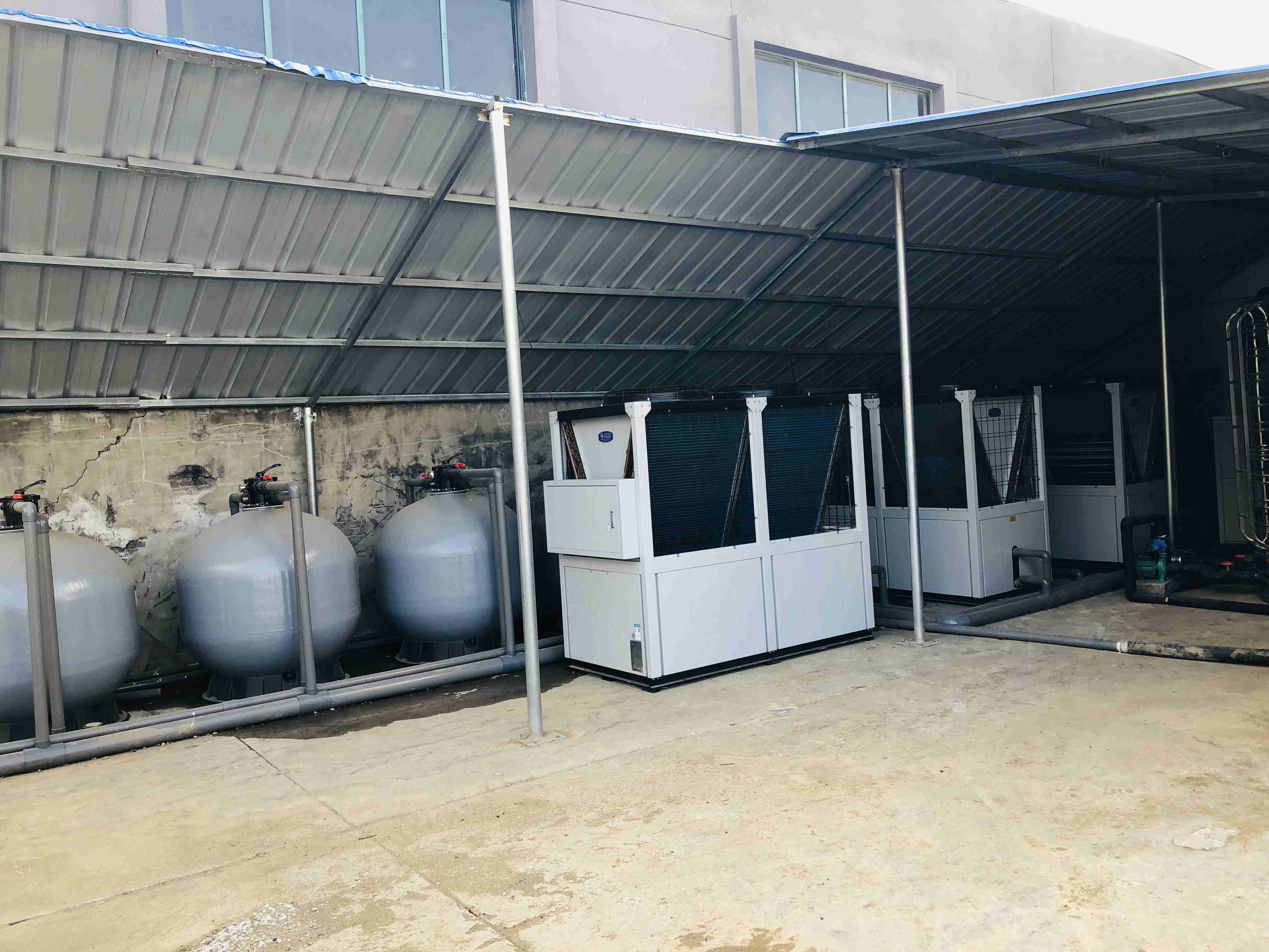 蚌埠大美健體俱樂部位于蚌埠新二中南側,總占地面積40000平方米,包括室內實木籃球館、實木羽毛球館、室內足球館、游泳館、蹦床館、器械健身館等多個場館。附設有休息室、娛樂室、會議室、洗浴室、吸煙區等功能區域。一個23*20*1.6米泳池,10T淋浴熱水,采用3臺天舒熱能空氣源泳池恒溫機組和1臺天舒熱能空氣源熱泵熱水機組來滿足使用需求。
